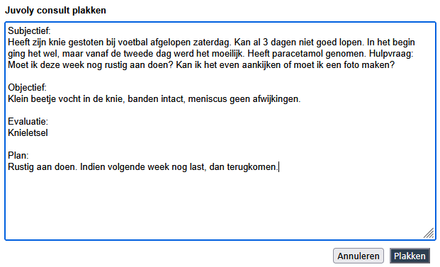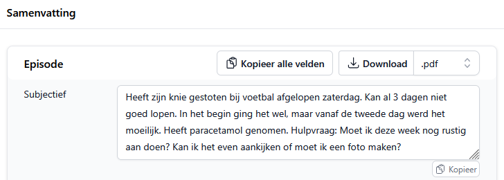 Na het voeren van een Juvoly consult kiest u per episode voor ‘Kopieer alle velden’.